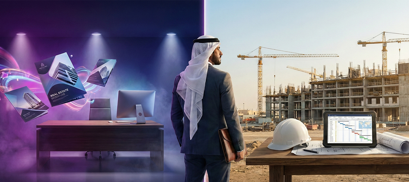 Marketing, by contrast, controls perception: glossy renders, VR walkthroughs, celebrity endorsements, and innovation claims that often disappear once construction begins. In the UAE, where buyers commit capital years before completion, only execution history—not creative presentation—predicts outcome.